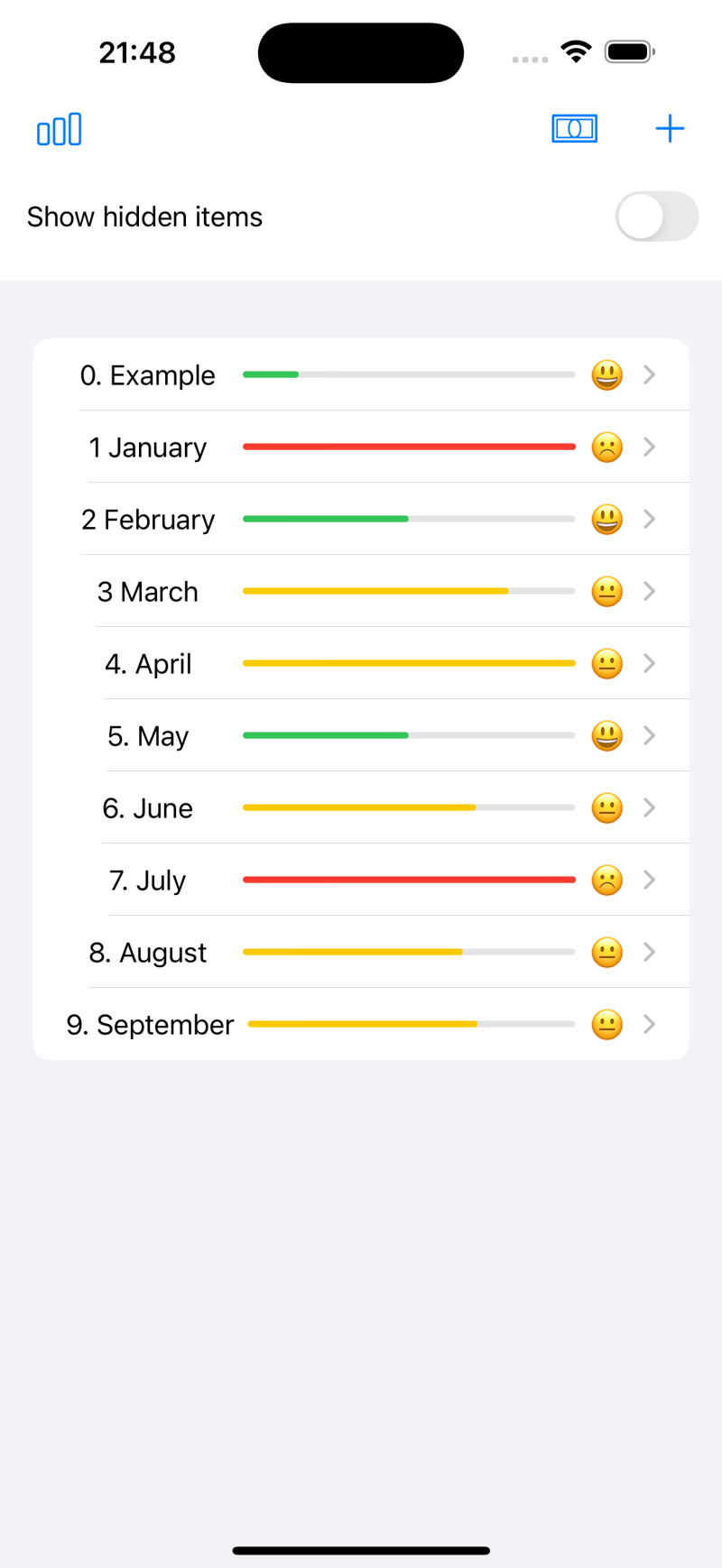 Build groups like online games, shop names or months and define a budget so that you can measure the spend against it. In the overview screen of the groups you can see at a glance the amount spend against your budget.