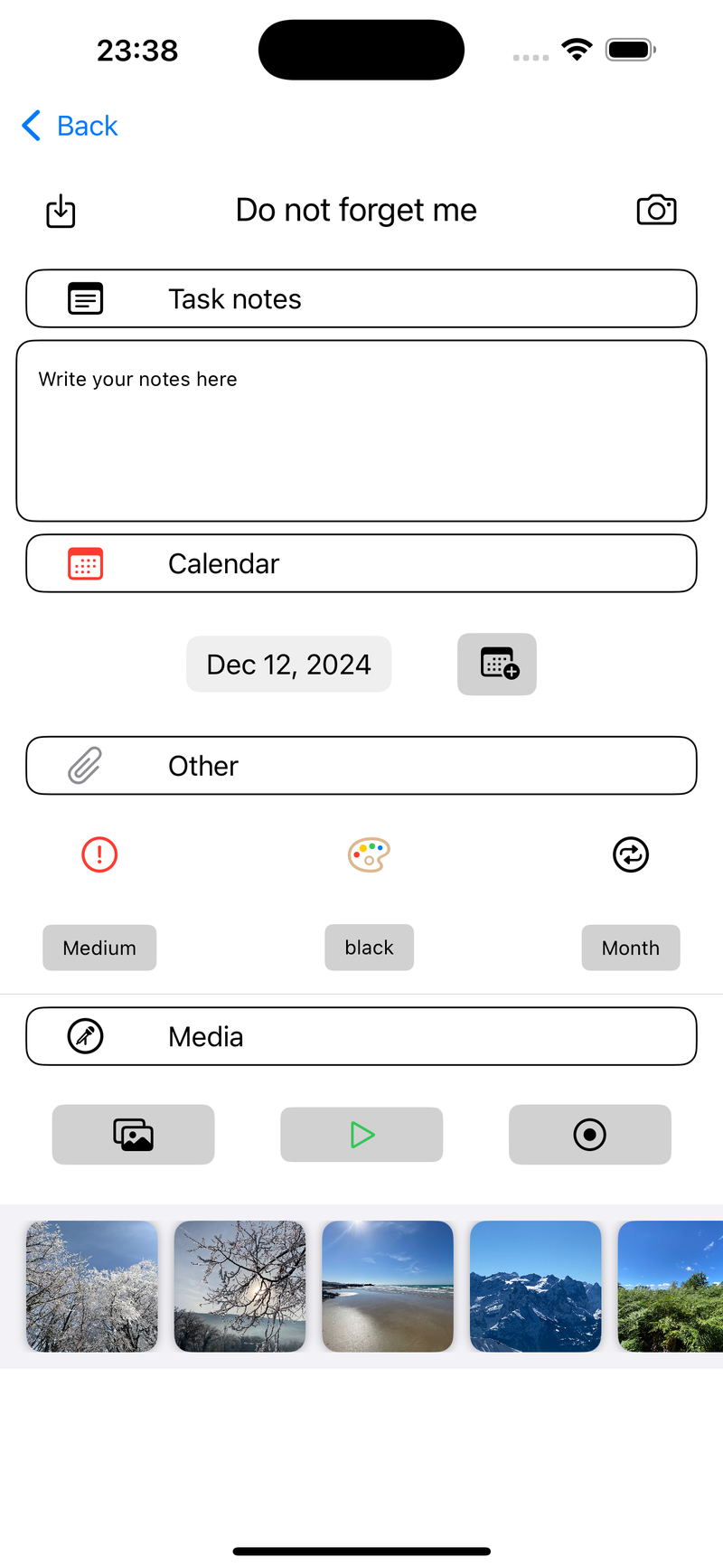 Give the task a name and fill other non compulsory fields like due data, priority, notes, text colour and recurrence. You can also add a photo and a voice memo to you task. You can just enter the name of the task and complete the information later if you want.