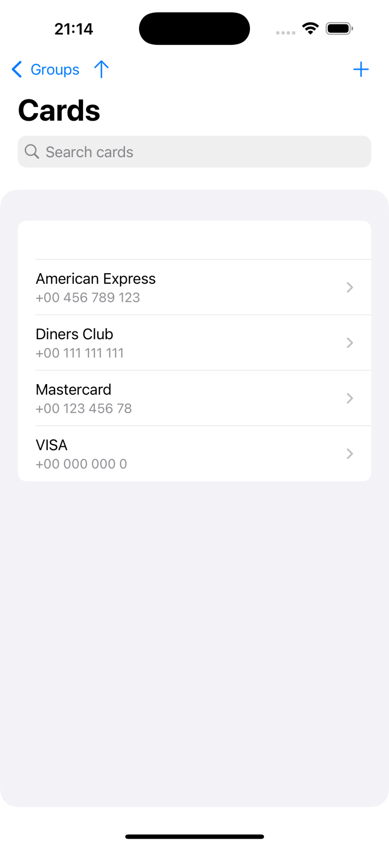 Card Block Helper lets you save essential contact numbers for blocking your credit card, ID, passport, and more. The app works offline, syncs with iCloud across your Apple devices, and lets you print or export a PDF for backup.