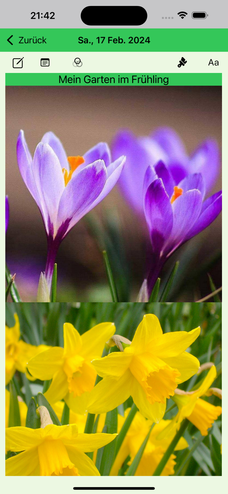 Sie können mit dieser App das Gartenjahr in Bildern mit einem kurzen Test festhalten. Damit können Sie sich Inspirationen für das aktuelle Jahr holen oder den Erfolg von Pflegemassnahmen prüfen.