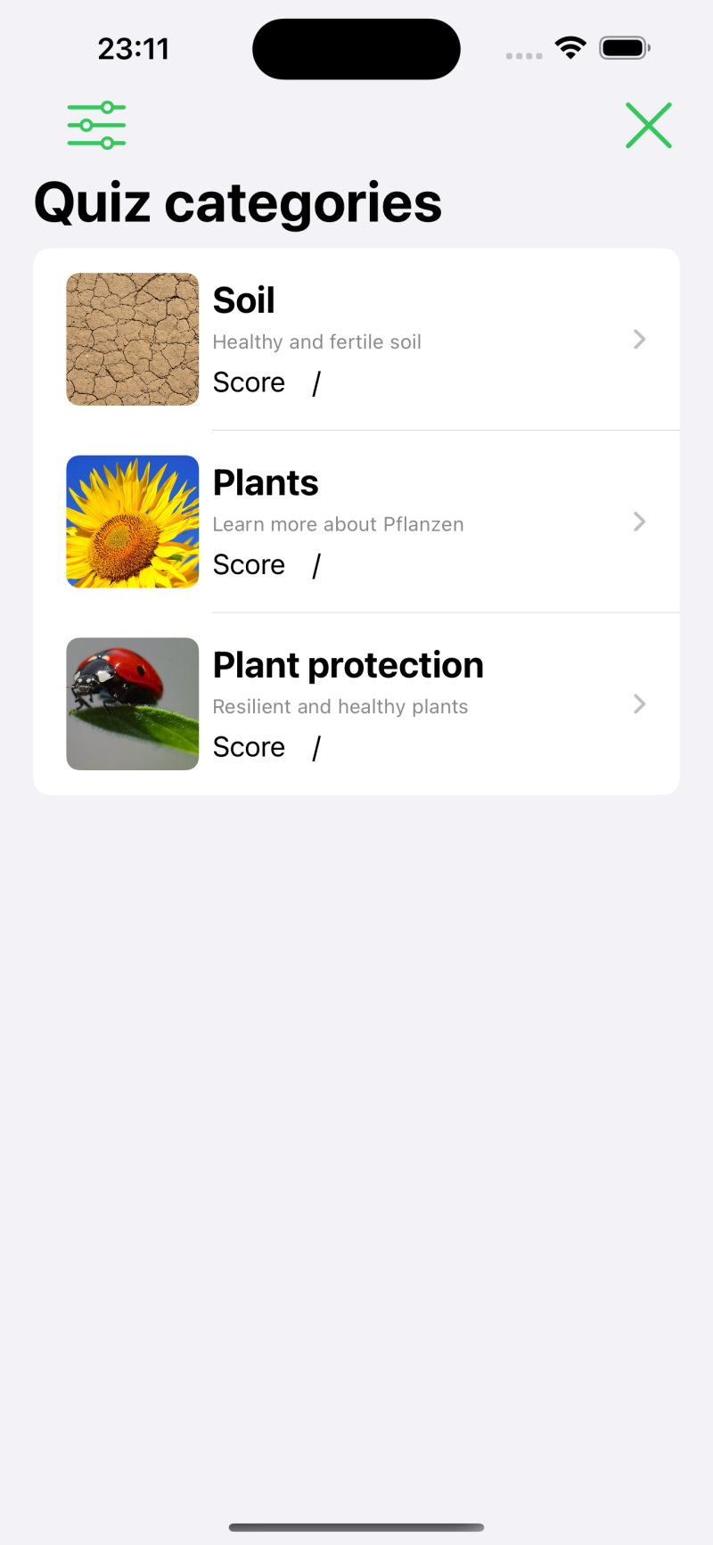 The app has a total of 16 quizzes with 240 questions and covers the topics of biological plant protection, garden soil and garden plants. It also includes three image quizzes.