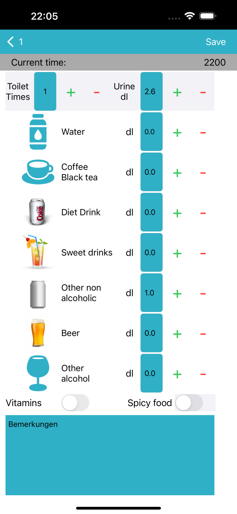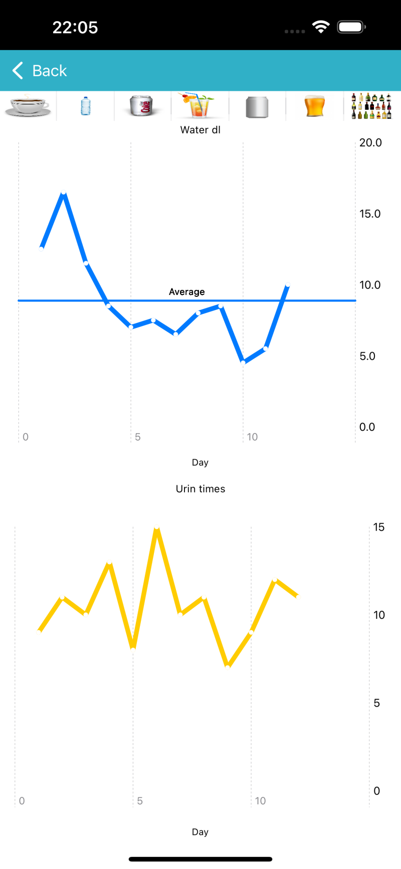 Use graphs to understand the impact of your drink habitudes on the incontinence. Use weekly reports to assess the improvements.