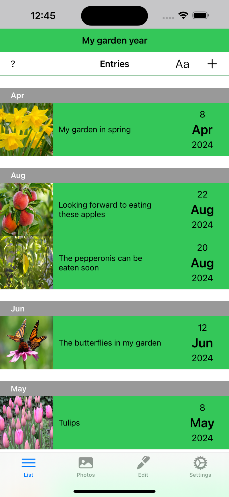 You can use this app to capture the garden year in pictures and with a short text. With this you can get inspiration for the current year or check the success of care measures.