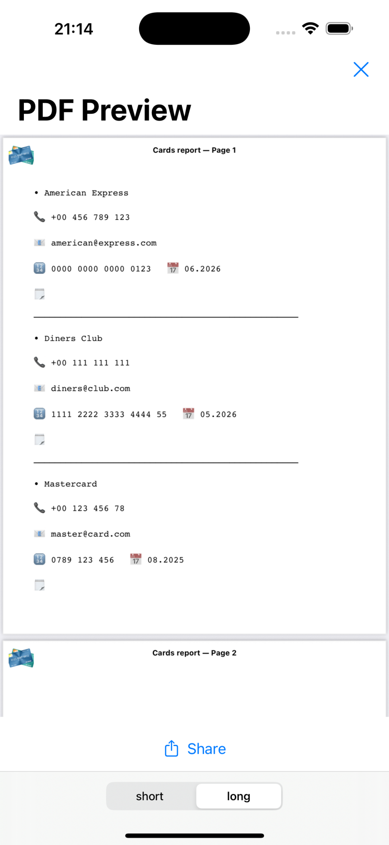 Card Block Helper lets you save essential contact numbers for blocking your credit card, ID, passport, and more. The app works offline, syncs with iCloud across your Apple devices, and lets you print or export a PDF for backup.