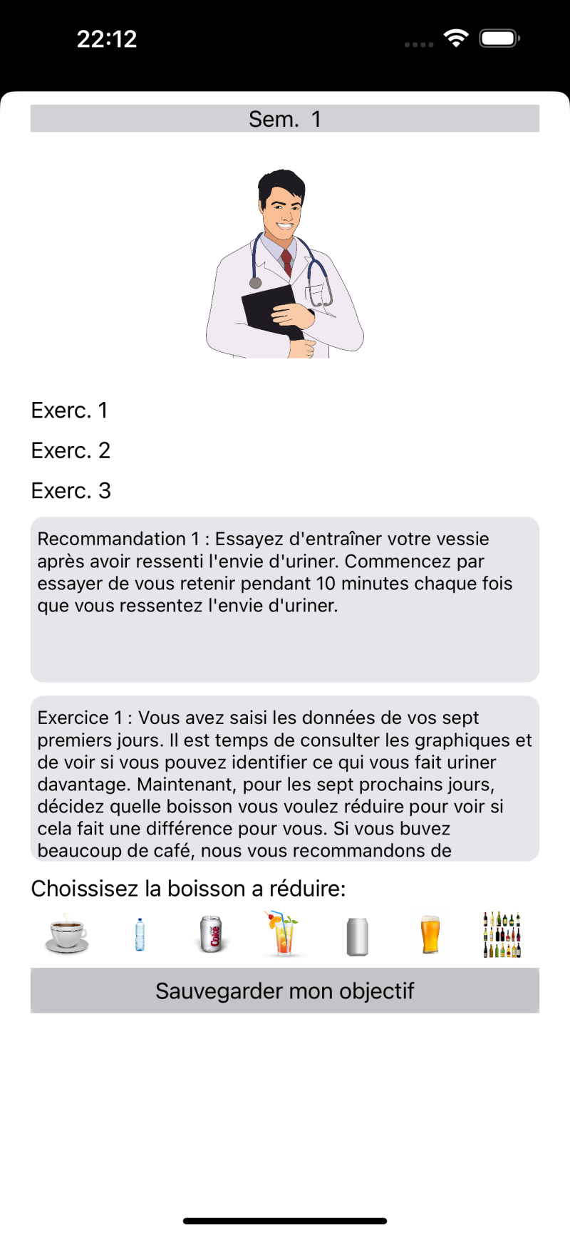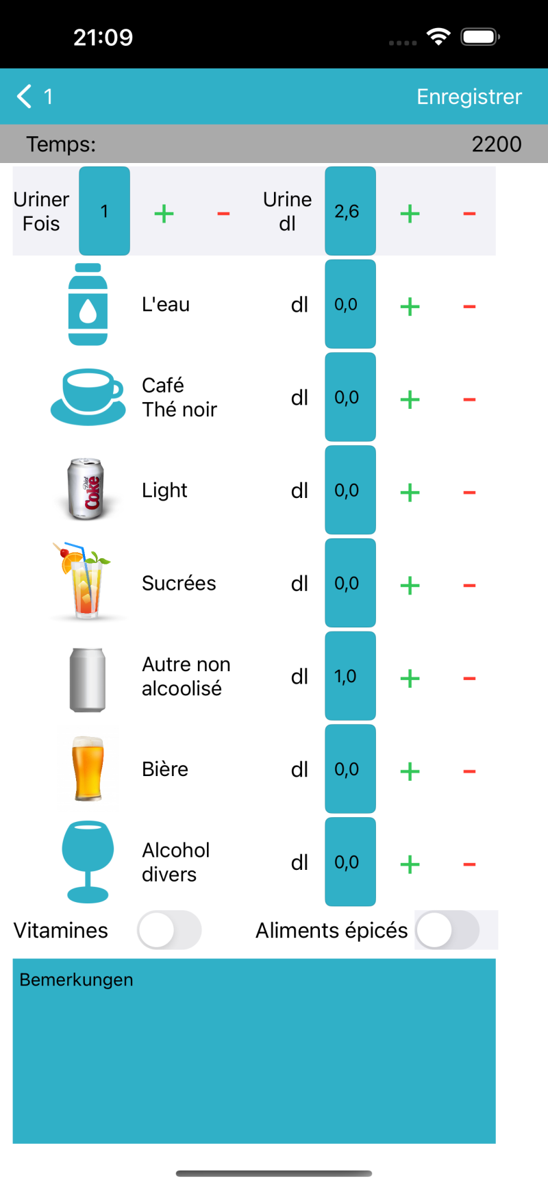 Grâce à cette application, vous pouvez noter la quantité de boissons que vous buvez et la fréquence de vos mictions, ce qui aidera le médecin à trouver la cause de l’incontinence.