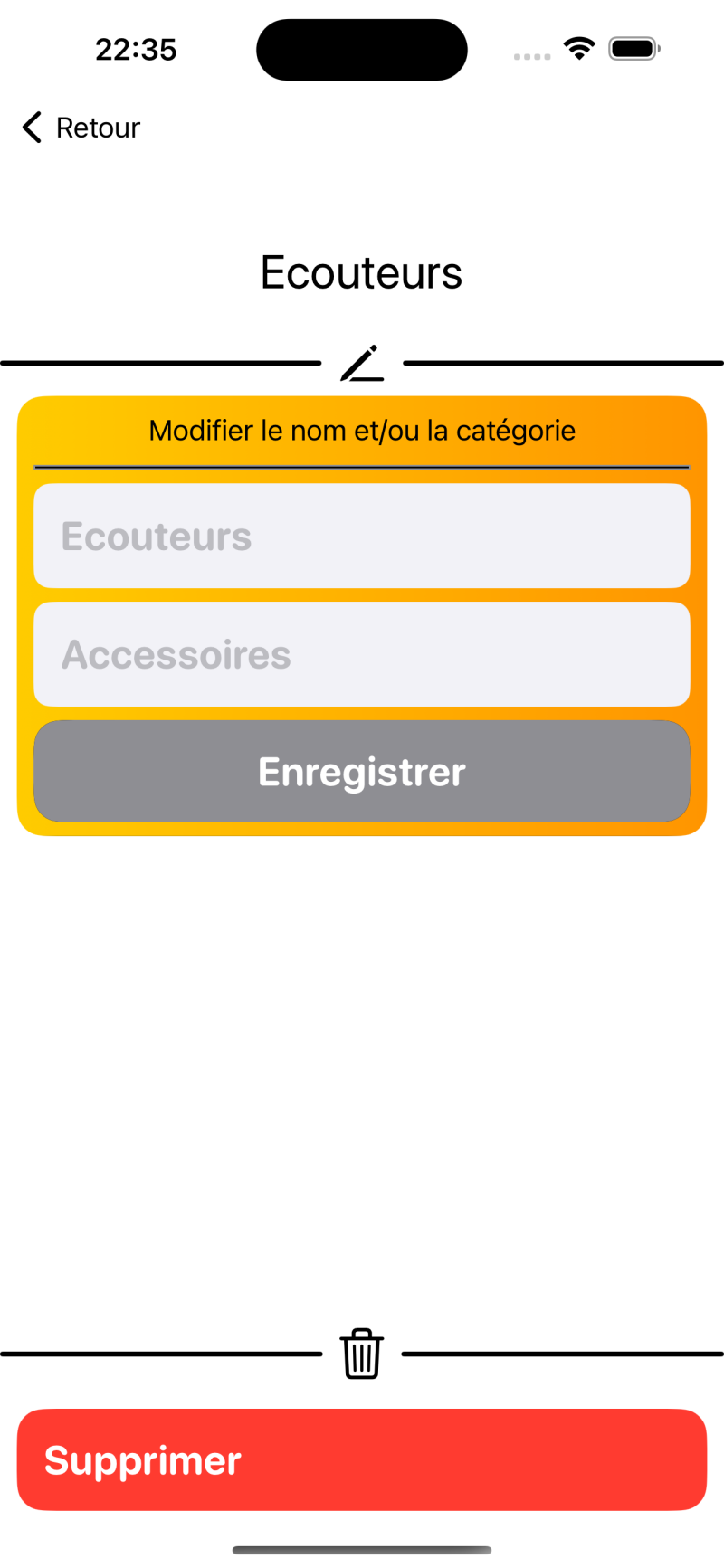 Les entrées peuvent être modifiées ou supprimées ultérieurement. Ajustez la mise en page de l'application (couleur de fond et police) selon vos souhaits.