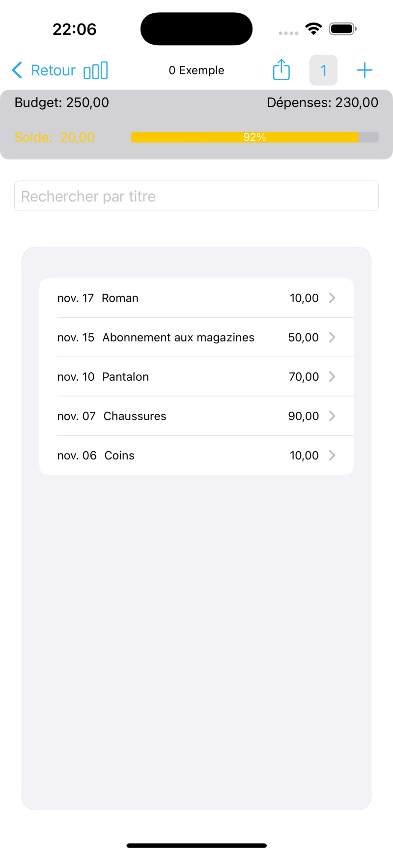 Nous nous sommes concentrés sur la simplicité. Entrez simplement le montant et le titre de la dépense pour avoir une transparence sur vos coûts. Mais si vous avez besoin de plus d'informations, vous pouvez ajouter des informations supplémentaires telles que le nom de la boutique, la catégorie et les remarques.